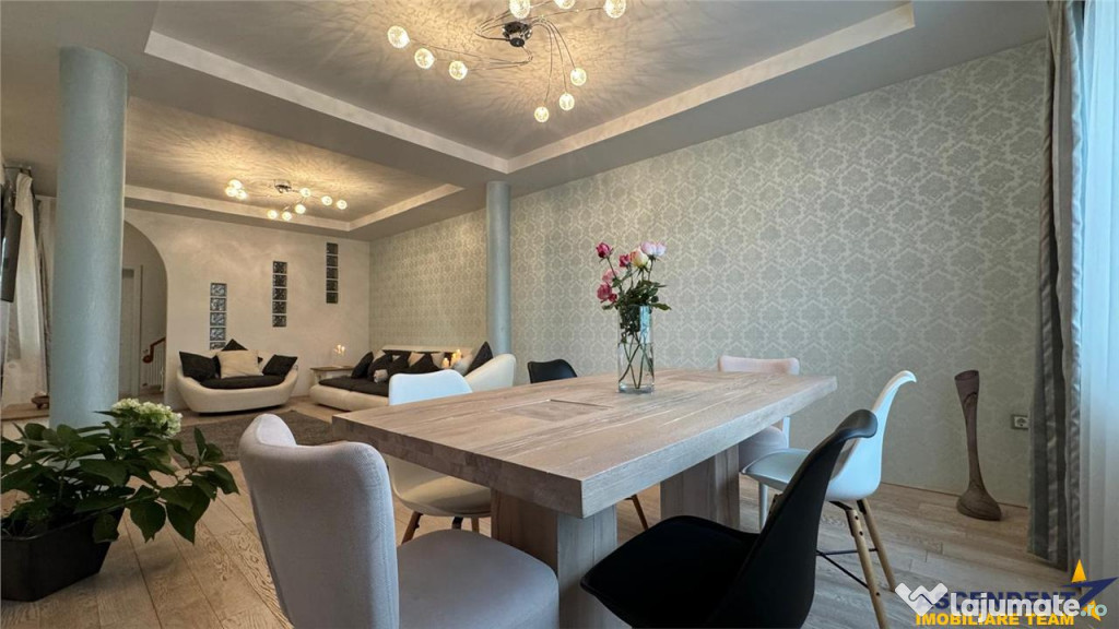 este onorata sa va invite sa descoperiti sa descoperiti o proprietate eleganta, mobilata, accesorizata, dotata cu finisaje de inalta calitate si echipamente premium, un cadru pentru un stil de viata rafinat, confortabil si echilibrat, ariata intr o apreciata zonare, cu acces facil, in Santana de Mures.