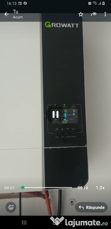 Anuntul VANZARE PACHET HIBRID GROWATT INVERTOR 5KW +15KW BATERII este adaugat de pe LaJumate.ro.