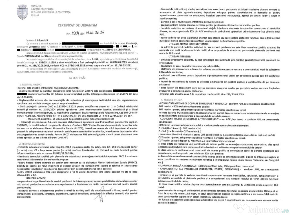 De vânzare teren intravilan în suprafață de 990 mp, cu construcție de 230 mp din BCA, renovabila, amplasat dezvoltată din Palazu Mare. Proprietatea beneficiază de deschidere de 21 m la șosea asfaltată, oferind acces facil și vizibilitate excelentă.Clădirea este racordată la gaze naturale și toate utilitățile necesare (apă, electricitate, canalizare).