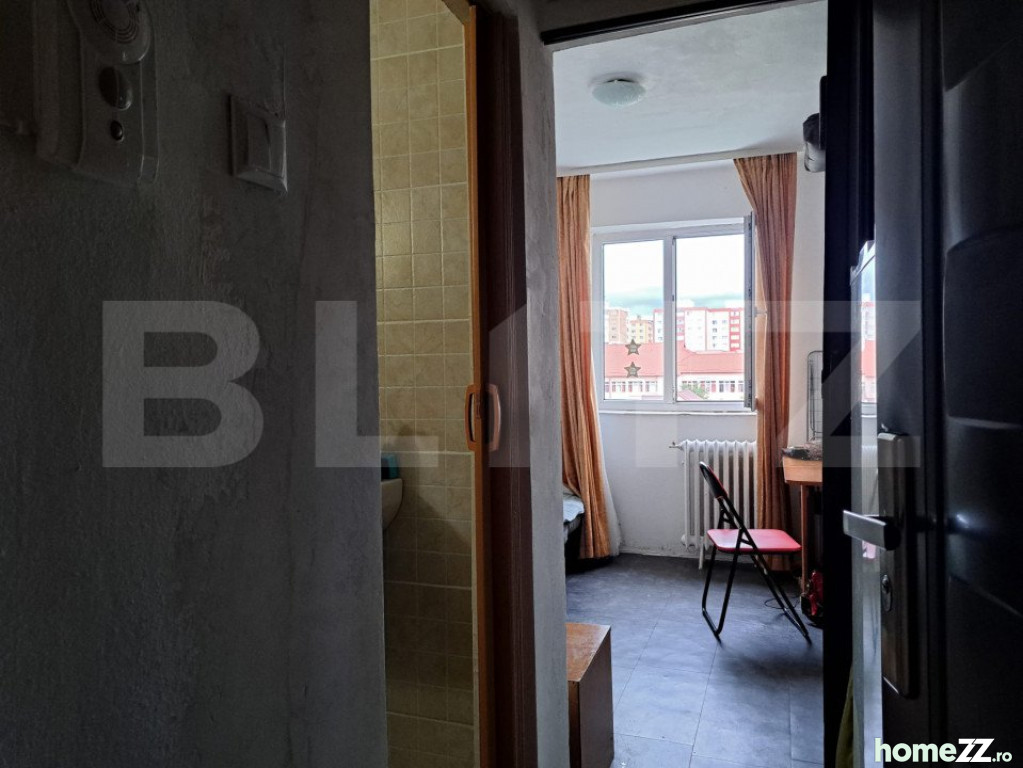 BLITZ vă propune spre vânzare o cameră de cămin situată în Cartierul Florilor, într-un bloc aflat în zona de case. Zona este bine dotată cu facilități, incluzând școli și centre comerciale. Blocul este prevăzut cu interfon și camere de supraveghere, asigurând un plus de securitate.Camera se afla la etajul 4/4, suprafata utila este de 12mp si nu necesita investitii.