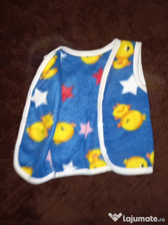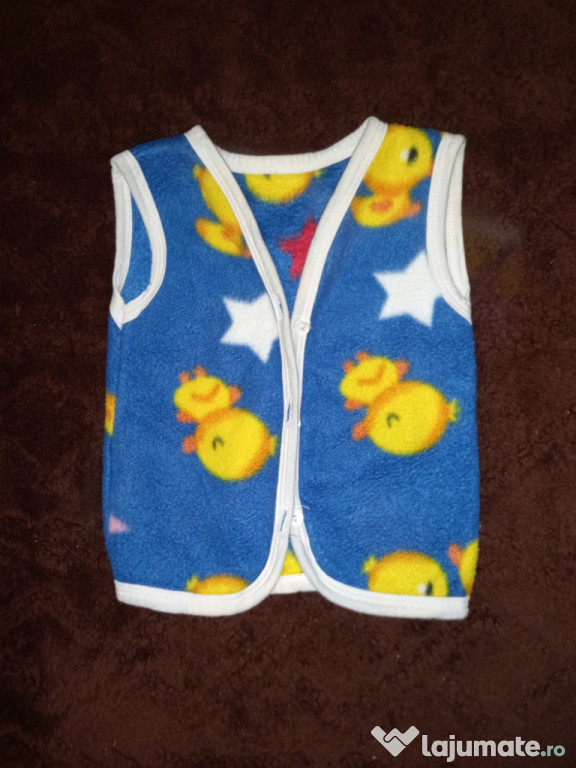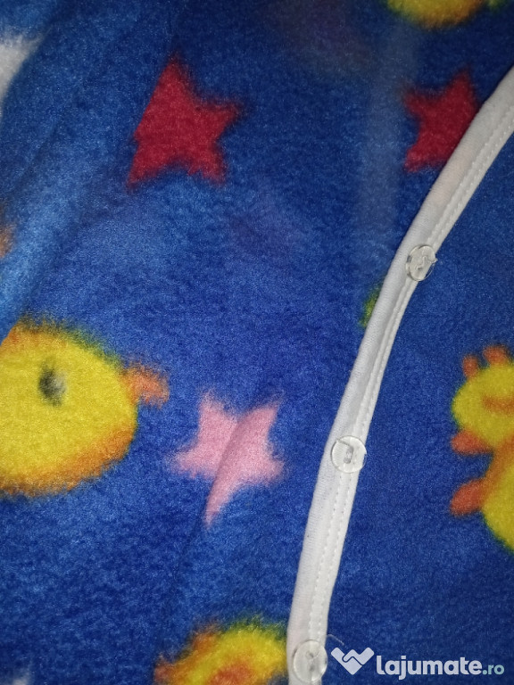 Vestuță din polar moale, mărimea 68 (3-6 luni) cu deschiderea în 3 năsturei.Fabricată în România.
