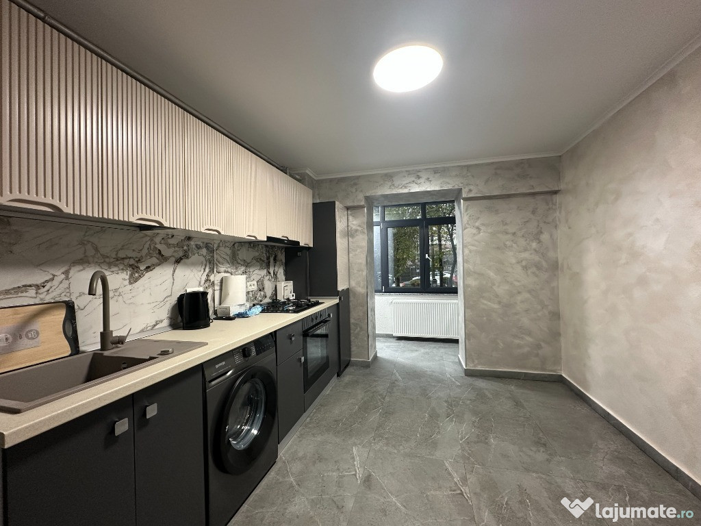 Agentia imobiliara VIGAFON ofera spre inchiriere apartament cu 2 camere situat in zona Cantacuzino,la parterul unui bloc cu regimul de inaltime P+8 nivele,confort 1 decomandat,compus din sufragerie,dormitor,bucatarie,baie,hol,balcon,cu o suprafata utila de 56 mp,finisaje si amenajari moderne(gresie,faianta,termopan,usa metalica,usi interior PVC,izolat exterior cu polistiren de 10 cm,calorifere de otel,aer conditionat,separatie de gaze,centrala termica,sistem de alarma),semimobilat si utilat.Confort: 1