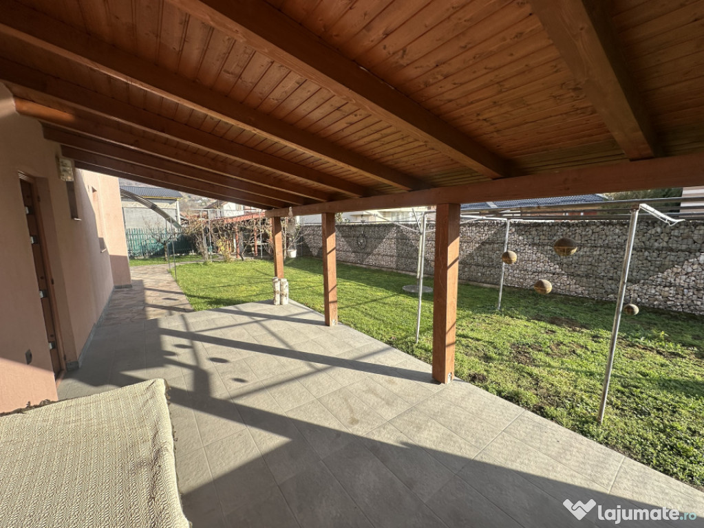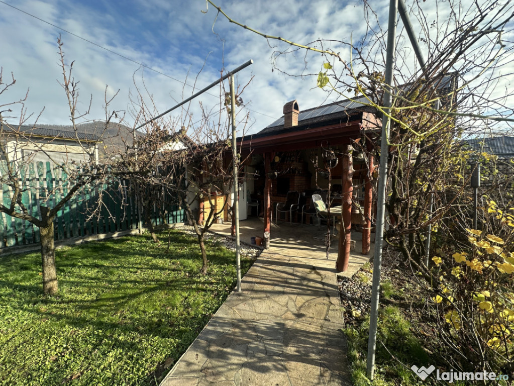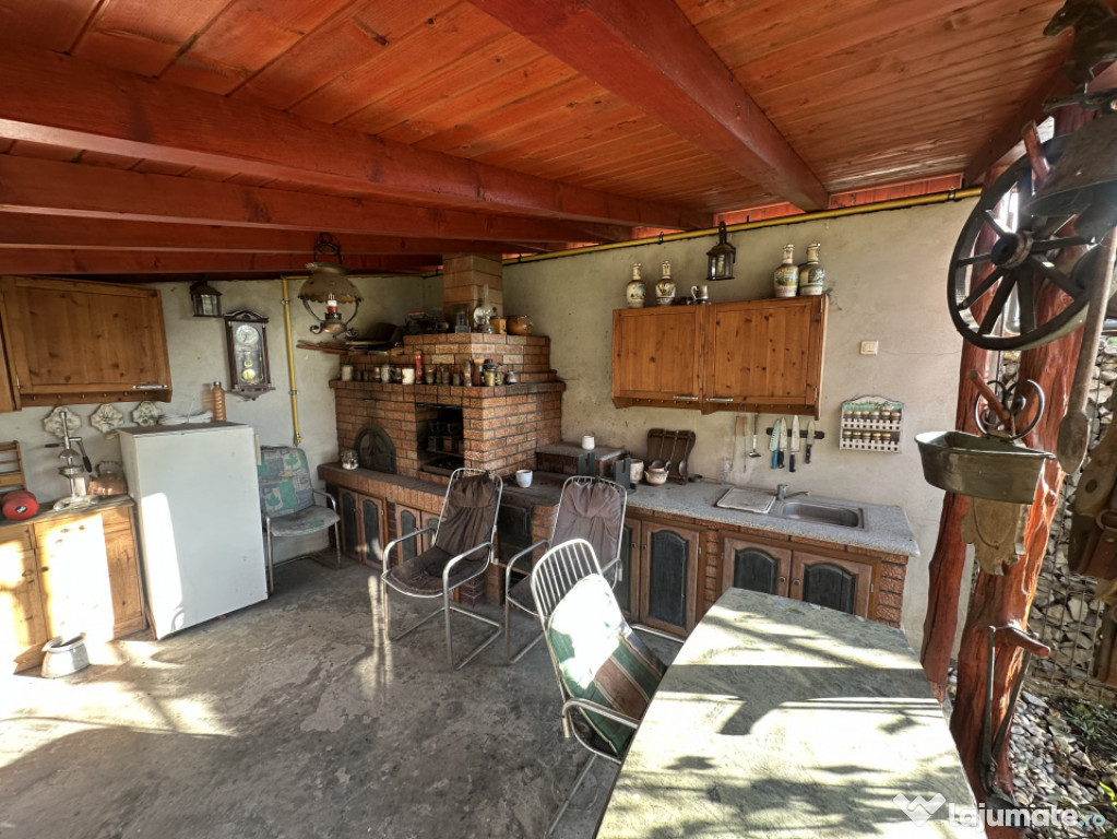 Exteriorul include o grădină matură amenajată, pavaj cu piatră naturală, bucătărie de vară rustică complet utilată, zonă de relaxare și spațiu generos pentru activități outdoor.