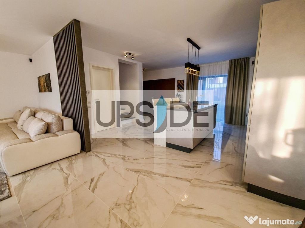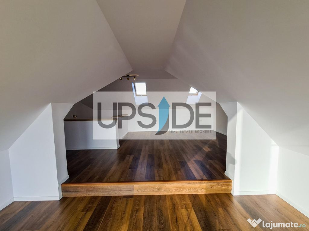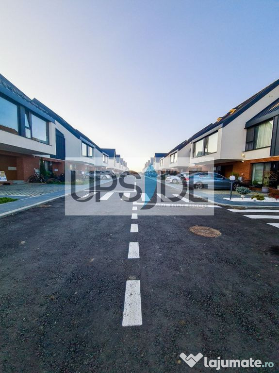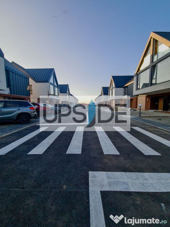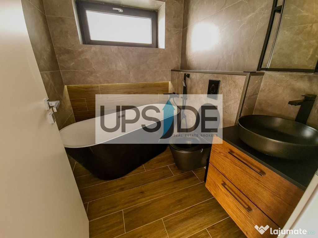 Locuinta dispune de finisaje premium: gresie şi faianţă INALCO Spania şi Marazzi Italia, plăci mari 120x60 şi 100x100, parchet triplu stratificat din Italia, obiecte sanitare şi accesorii DALET negre, scări din stejar natur cu mână curentă, perdele şi draperii 100% opace de la Art Decora Italia, iluminat LED EGLO Germania, uşi Italia cu finisaj pin scandinav şi feronerie neagră.