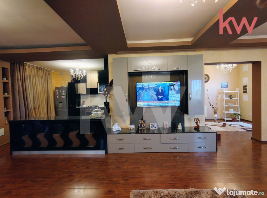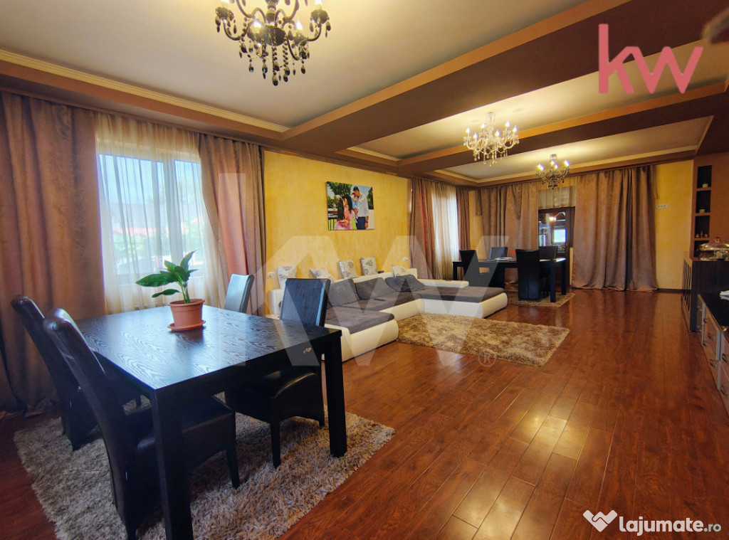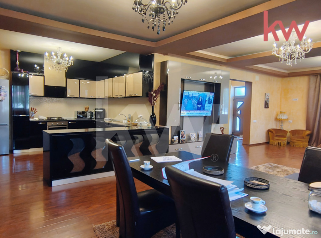 8 camere, 6 băi, bucătărie mare și spații tehnice bine organizate, beci, foișor cu grătar, bar .