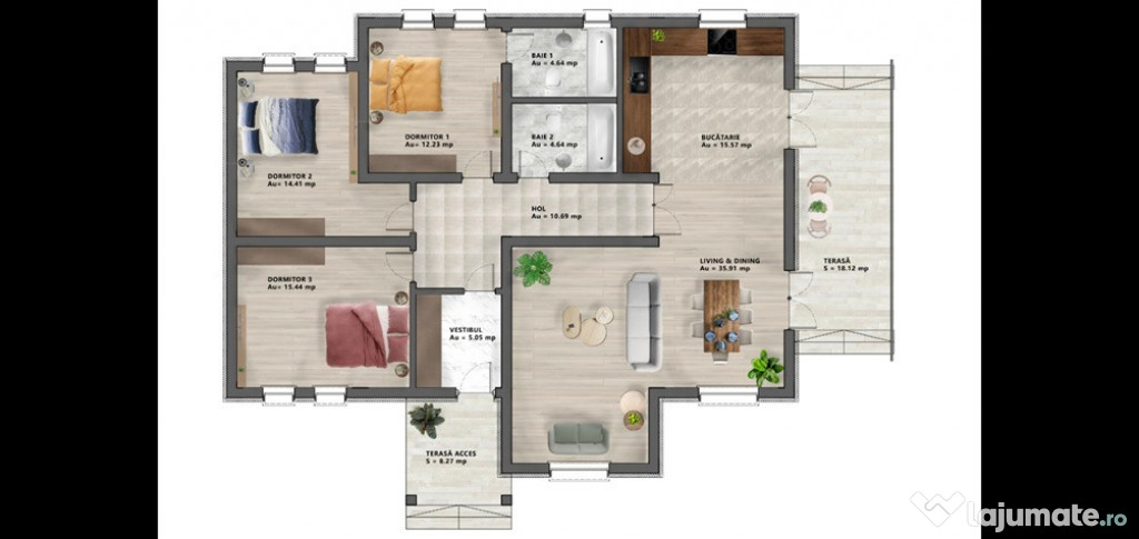 Va propunem spre vanzare o vila in stadiul ''la rosu'' situata intr-o locatie excelenta a localitatii Balotesti, in apropiere de padurea Codrii Vlasiei,o zona linistita cu constructii cochete.Construita in anul 2023 din caramida poroterm si cadre de beton, cu o inaltime interioara a camerelor de peste 3,5 m,casa ne ofera o suprafata de 158 mp dispusi pe parter.Tigla metalica de la Bilka,deasemenea a fost montata pentru a asigura un acoperis trainic ,iar in ceea ce priveste compartimentarea precizam ca cei 158 mp ne ofera un living in suprafata de 36 mp,bucatarie,ce poate fi inchisa,cu suprafata de 16 mp,dormitor matrimonial cu baie proprie in suprafata de 17 mp,si alte doua dormitoare deservite de o baie comuna.Deasemenea mentionam terasa,cea mare in suprafata de 12 mp la care avem acces atat din bucatarie cat si din living.Terenul casei are suprafata de 400 mp la care se adauga inca 100 mp cota din drumul de acces, drum cu latimea de opt metri. Ca si utilitati,vila se vinde bransata la sistemul de canalizare si apa curenta a localitatii,deasemenea la energie electrica.Spre a intampina eventuale nedumeriri cu privire la constructia casei,actualul proprietar a pastrat fotografii din timpul executiei casei in diferite stadii,dealtfel temeinicia constructiei putand fi evaluata si la casa care se afla acum in stadiul ''la rosu''.Fiind la acest stadiu,cumparatorul poate urmari ,alege,si bugeta materialele si finisajele care i se potrivesc.Acest imobil reprezinta cu siguranta un camin fara cusur,raportul dintre calitate si pret fiind clar in favoarea cumparatorului.Probabil in descriere nu am reusit sa cuprind toate detaliile casei,astfel ca va invit la o vizionare,pentru a va putea convinge ca poate fi o optiune pentru dumneavoastra.pret 99000 euroAnuntul Vila Balotesti, padure, 'la rosu', bransata la utilitati este adaugat de pe LaJumate.ro.