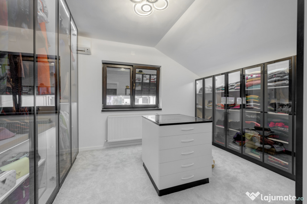 Vilă este edificata pe un teren de 333mp , dispune de living,bucatarie și spații de depozitare eficiente, 3 dormitoare, 2 băi, garaj și subsol, și are o suprafață desfășurată de 217mp.