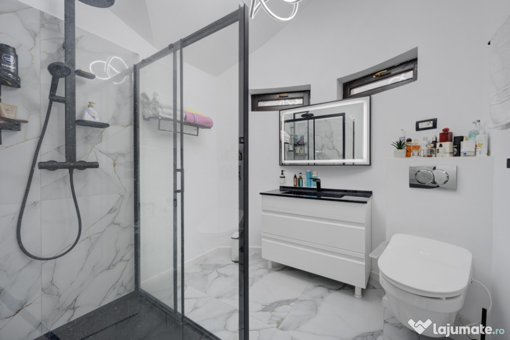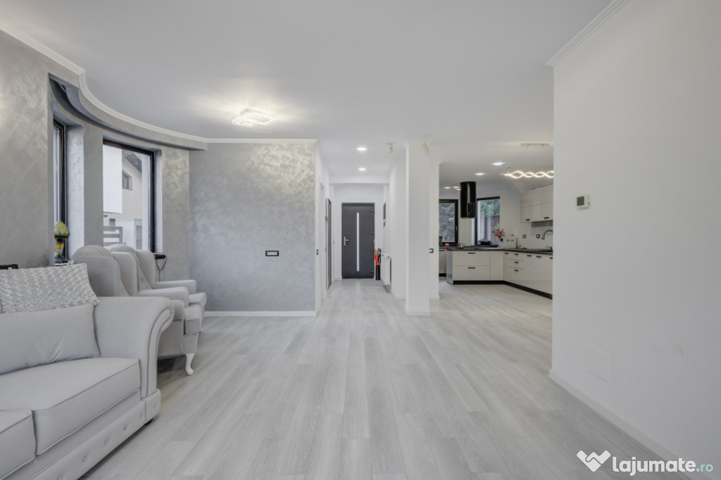 Casa este construită cu materiale de calitate, izolată termic și beneficiază de încălzire prin centrală proprie. Finisajele moderne și compartimentarea inteligentă o fac ideală pentru locuit permanent.