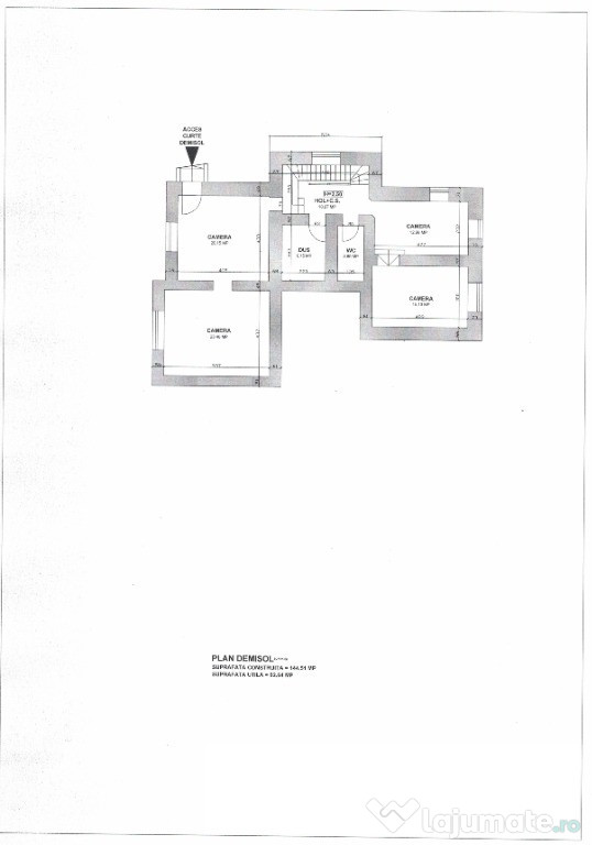• Suprafață construită demisol: 144,51 mp