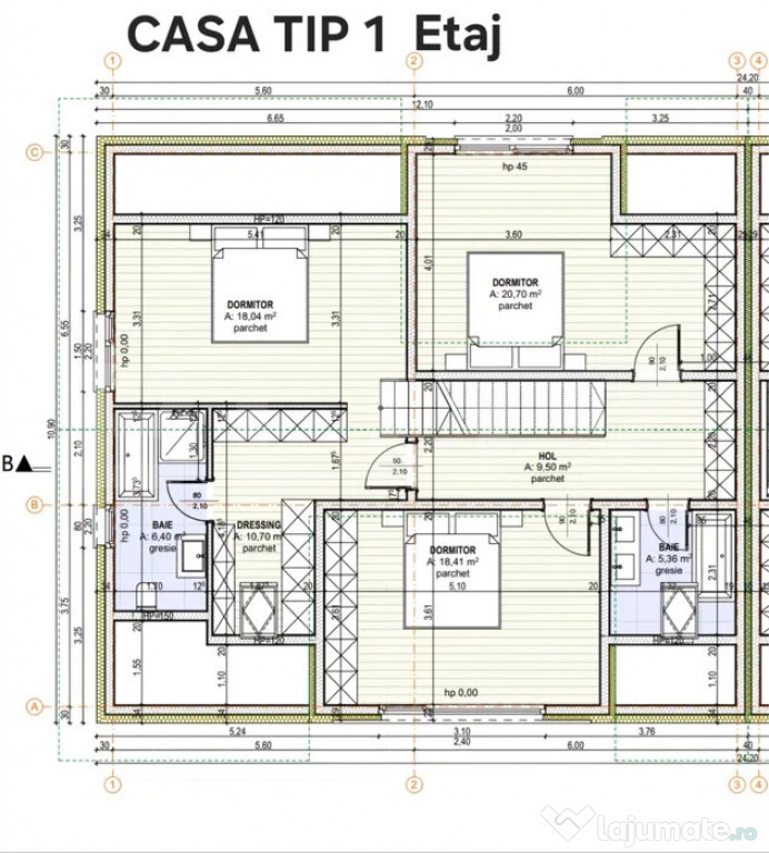 Parter: Living openspace cu bucataria,2 bai, camara, 2 dormitoare si , camera tehnica pt uscare haine, lavanderie.