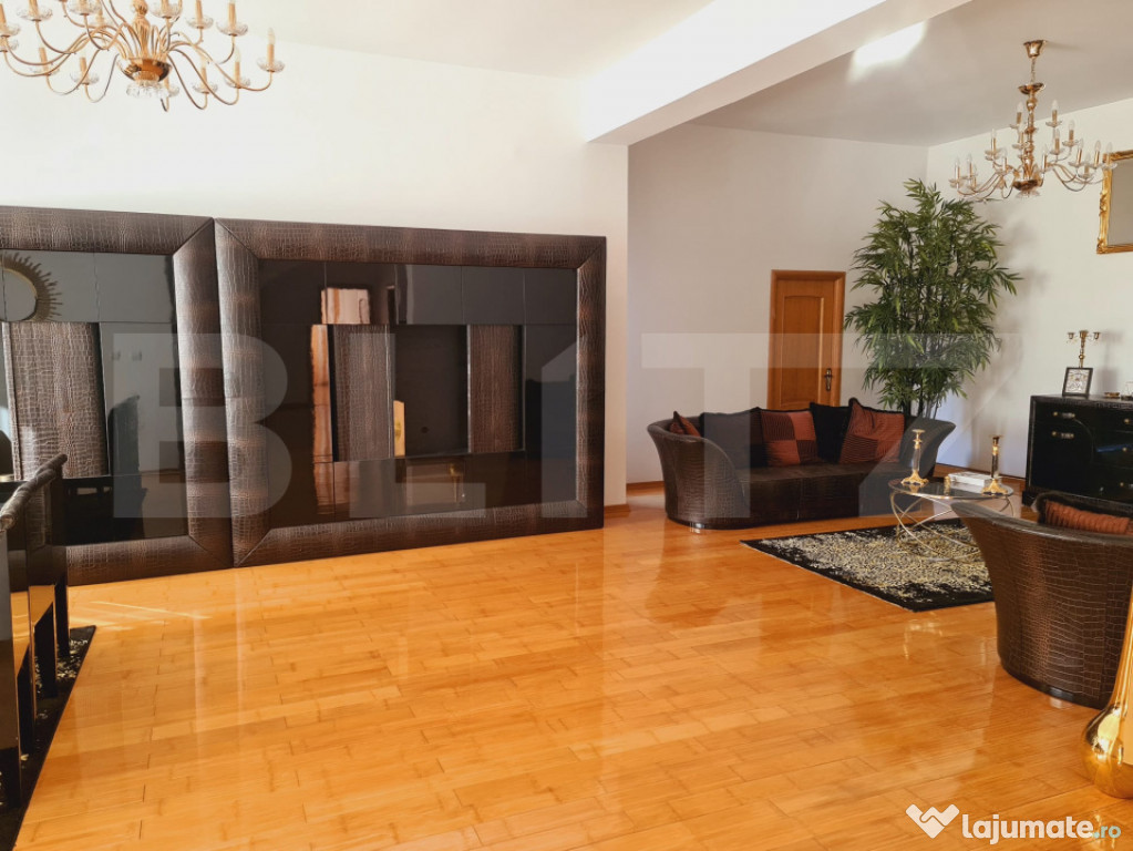 Vă propunem spre închiriere o vilă de lux, situată într-una dintre cele mai exclusiviste și istorice zone din Târgoviște, județul Dâmbovița. Proprietatea impresionează prin eleganță, rafinament și confort, fiind alegerea ideală pentru cei care își doresc un stil de viață modern într-un cadru cu tradiție și prestigiu.Vila se desfășoară pe o suprafață utilă de 350 mp, amplasată pe un teren generos de 700 mp, și este construită cu materiale de înaltă calitate și finisaje premium, asigurând un ambient deosebit și funcționalitate perfectă.