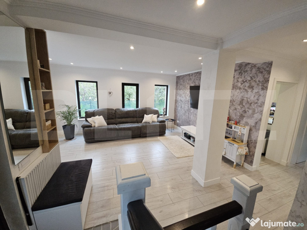 Vila este amplasata pe un teren cu suprafata de 550 mp si are o suprafata construita de 210 mp, din care 160 reprezinta metri patrati utili.