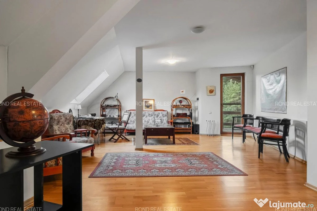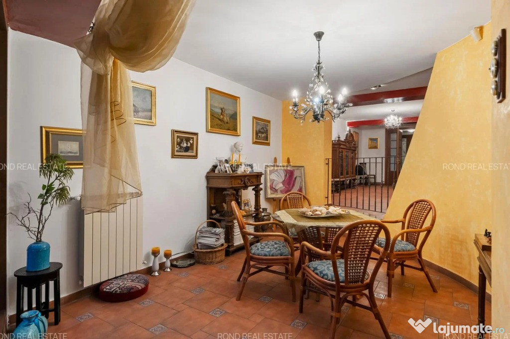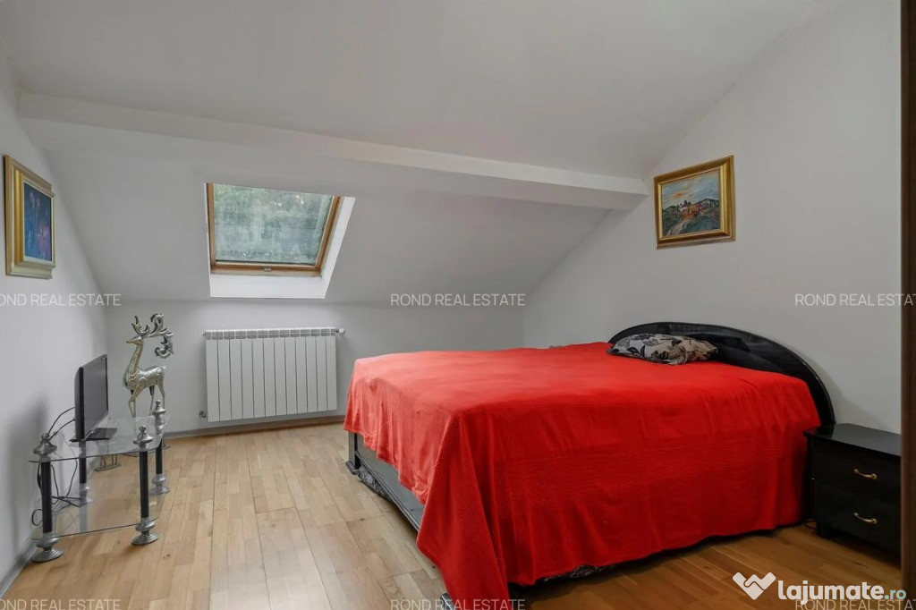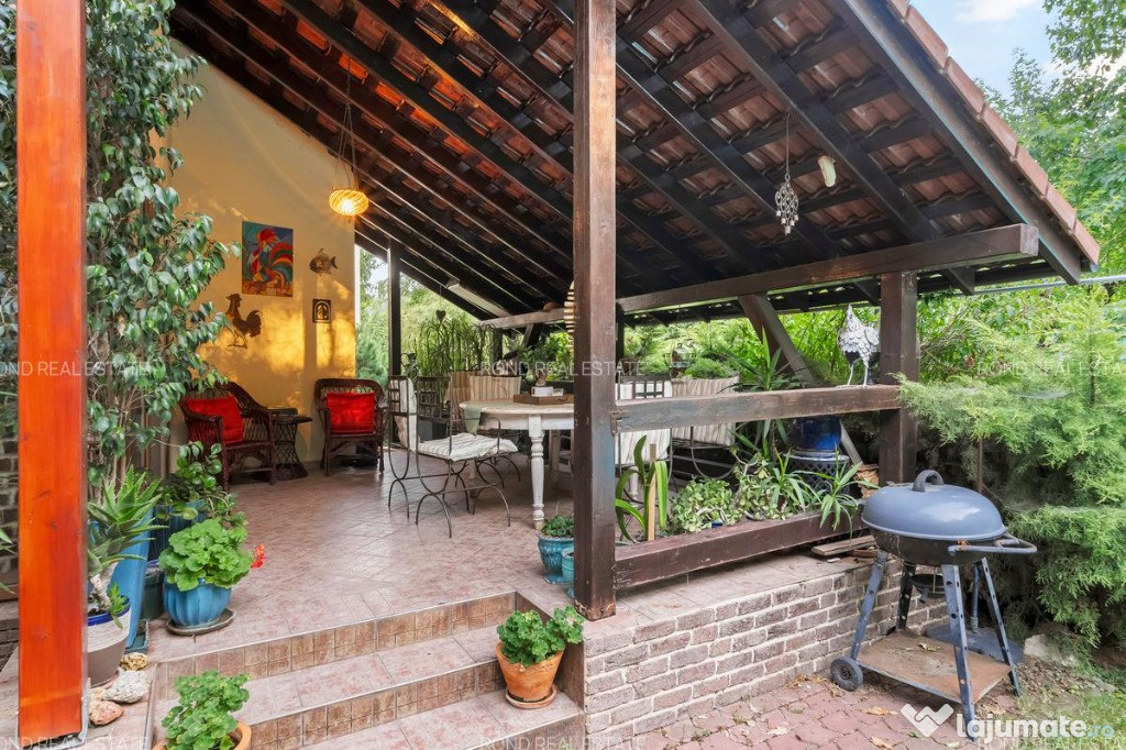 • Grădină matură, cu arbori și vegetație bogată, ce conferă intimitate completă.