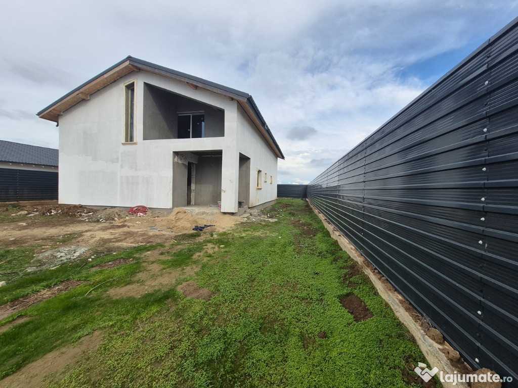Oferim spre vanzare vila situata in Balotesti ,in apropiere de lacul din localitate,vila ce are suprafata construita de 200 mp rezultand o suprafata utila,fara terase, de 180 mp.Terenul aferent casei este de 570 mp ,aceasta fiind suprafata,integrala, ingradita a lotului la care se adauga si cota din drumul privat de acces.Drumul de acces are latimea de noua metri,ceea ce permite pe viitor garararea masinilor in fata portii,fara a pierde din spatiul curtii.Vila este construita in regim de parter plus mansarda,la parter fiind compartimentate trei dormitoare,doua bai,bucatarie si living,iar la etaj doua dormitoare,o baie si living.Casa a fost construita in anul 2025,proprietarul detinand toate avizele necesare constructiei,dar si poze si video din toate stadiile lucrarilor.Este o casa ce respecta toate normele in constructii,fiind edificata din stalpi de beton si bca,izolata la exterior cu polistiren de 15 cm,iar la etaj cu vata minerala bazaltica de 10 cm.Imobilul este imprejmuit cu gard din placi de beton,dar si cu sipca metalica spre partile laterale,iar poarta de acces este metalica actionata electric.Deasemenea mentionam ca alimentarea cu apa se face din put propriu forat la aproximativ 25 metri adancime.Acoperisul a fost invelit cu tabla Bilka de 5 cm iar geamurile sunt ferestre tripan Salamander.Incalzirea casei se face cu ajutorul centralei pe gaz.Imobilul se afla in acest moment in stadiul”la gri” beneficiind de avantajul ca viitorul proprietar sa-si poata alege finisajele interioare,culori usi/gresie/faianta/parchet intr-un buget agreat cu constructorul.Vila se vinde la pretul de 239000 euro,finisata integral,si bransata la toate utilitatile.Pentru mai multe detalii ne puteti contacta la nr de telefon ascunsAnuntul Vila de vanzare in Balotesti,vecinatate lac este adaugat de pe LaJumate.ro.