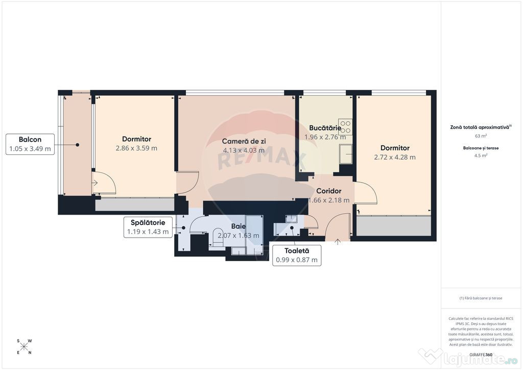 Compartimentare: 3 camere, 2 băi, balcon închis