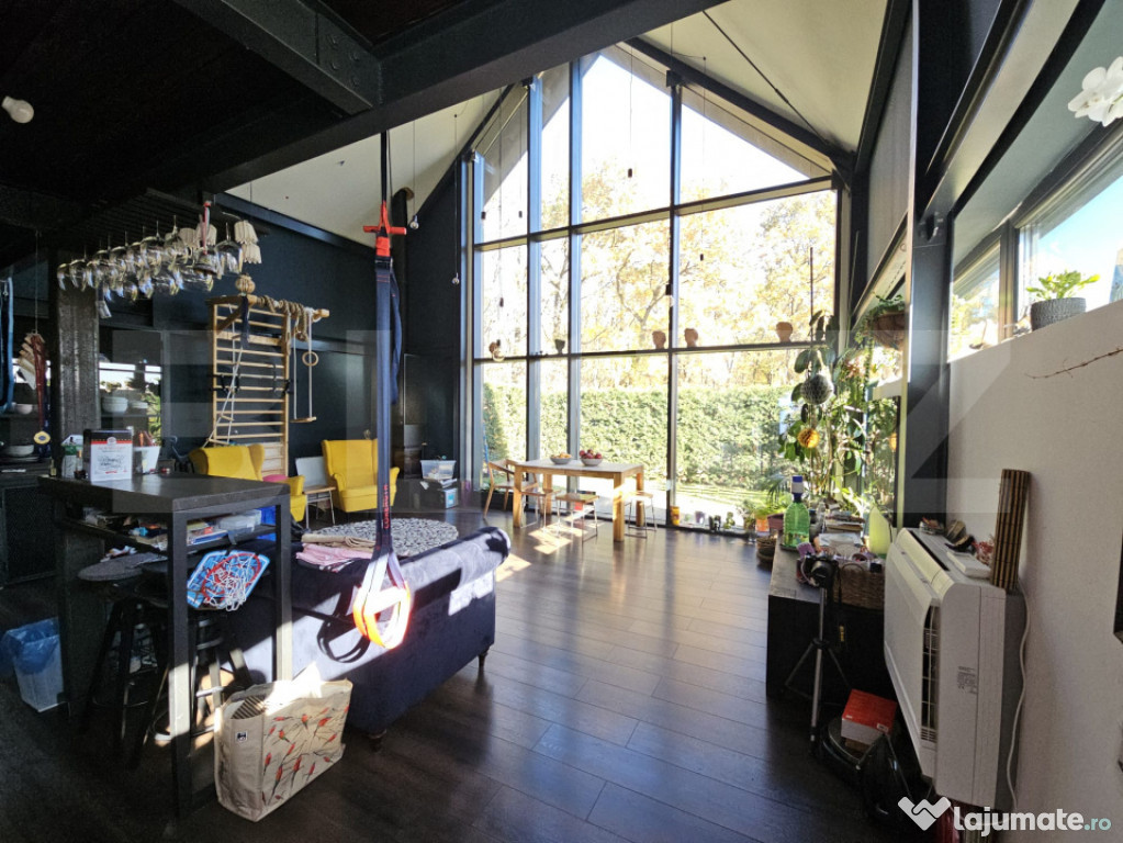 Compartimentare: Parter - compus dintr-un living foarte spatios invecinat de o bucatarie deschisa, dormitor matrimonial cu baie mare cu cada, hol la intrare in casa, scara interioara.