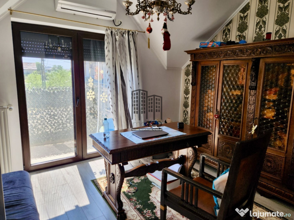 În Mogoșoaia, într-o zonă foarte bine poziționată, unde accesul către oraș este rapid, iar atmosfera rămâne totuși liniștită și aerisită, se află o vilă modernă care pare să fi fost creată pentru a deveni „acasă”. De la primul pas în curte, simți un echilibru plăcut între spațiu, lumină și intimitate. Totul este bine proporționat, iar casa te întâmpină cu senzația că aici începe o nouă poveste.Proprietatea dispune de 174 mp utili, atent împărțiți, astfel încât fiecare încăpere să aibă rostul ei. Terenul de 300 mp oferă loc suficient pentru aer liber, pentru joacă, pentru relaxare, pentru visat. Vila are o amprentă la sol de 100 mp și o suprafață total construită de aproximativ 200 mp, fiind concepută cu grijă pentru ca funcționalitatea și confortul să meargă mână în mână.