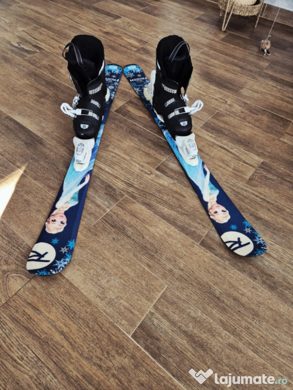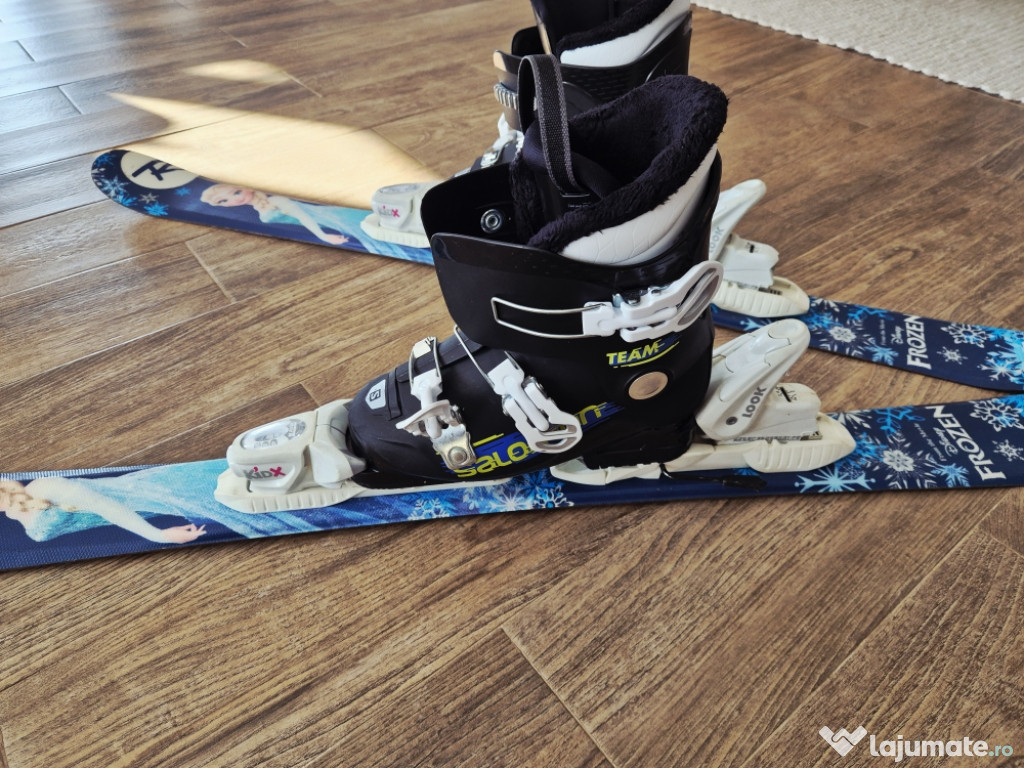 Set de schiuri Rossignol Frozen 110 cm + clapari Salomon 22/22.5. Stare foarte buna.Anuntul Set clapari + schiuri este adaugat de pe LaJumate.ro.