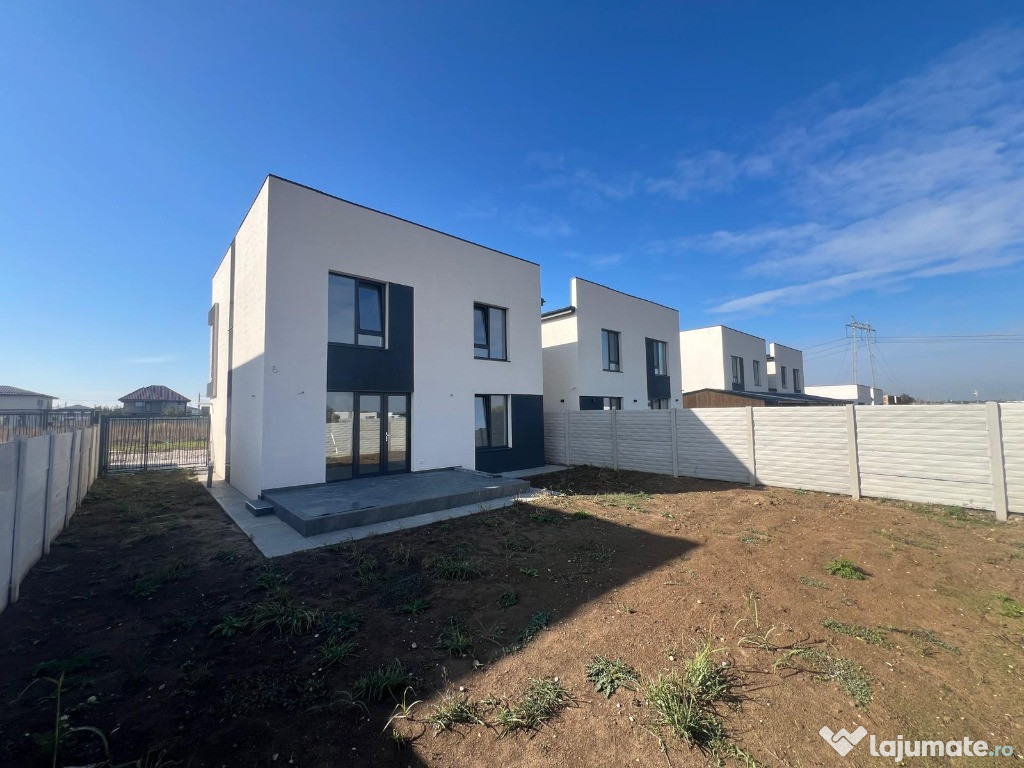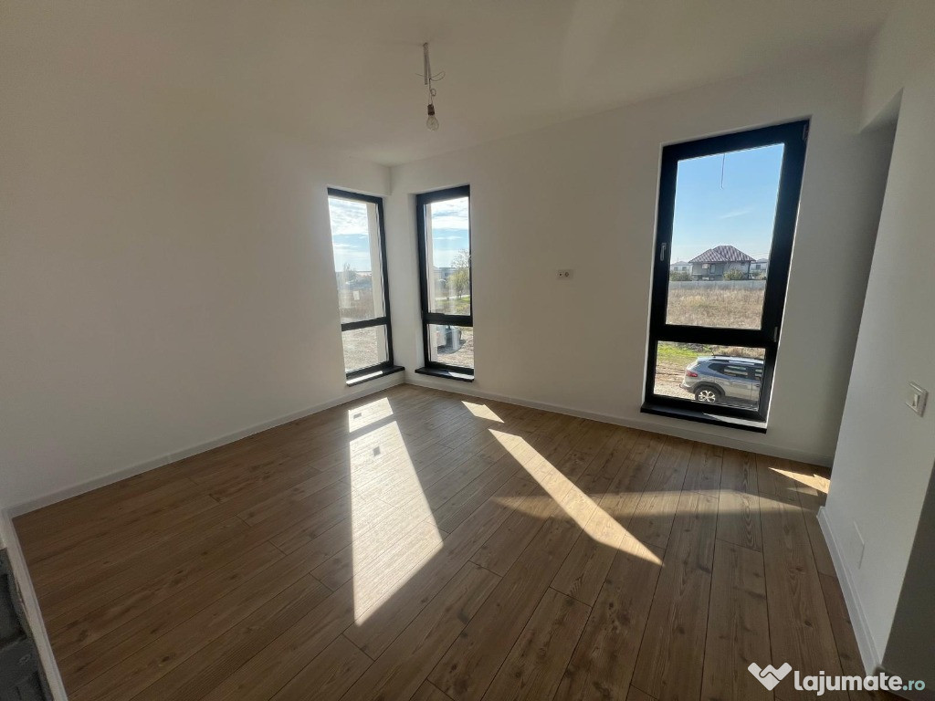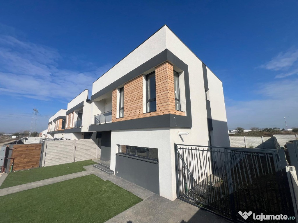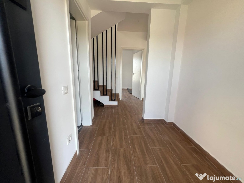 Descoperiți o casă într-un complex rezidențial format din 10 vile individuale, perfectă pentru familii sau persoane care apreciază confortul, siguranța și intimitatea. Cu 5 camere spațioase și 3 băi moderne, această proprietate oferă tot ce aveți nevoie pentru a trăi într-un mod elegant și rafinat.La parter, veți găsi un living generos, ideal pentru momentele petrecute în familie, o bucătărie spațioasă, un dormitor (ce poate fi folosit și ca birou), o baie și o debara utilă pentru depozitare.