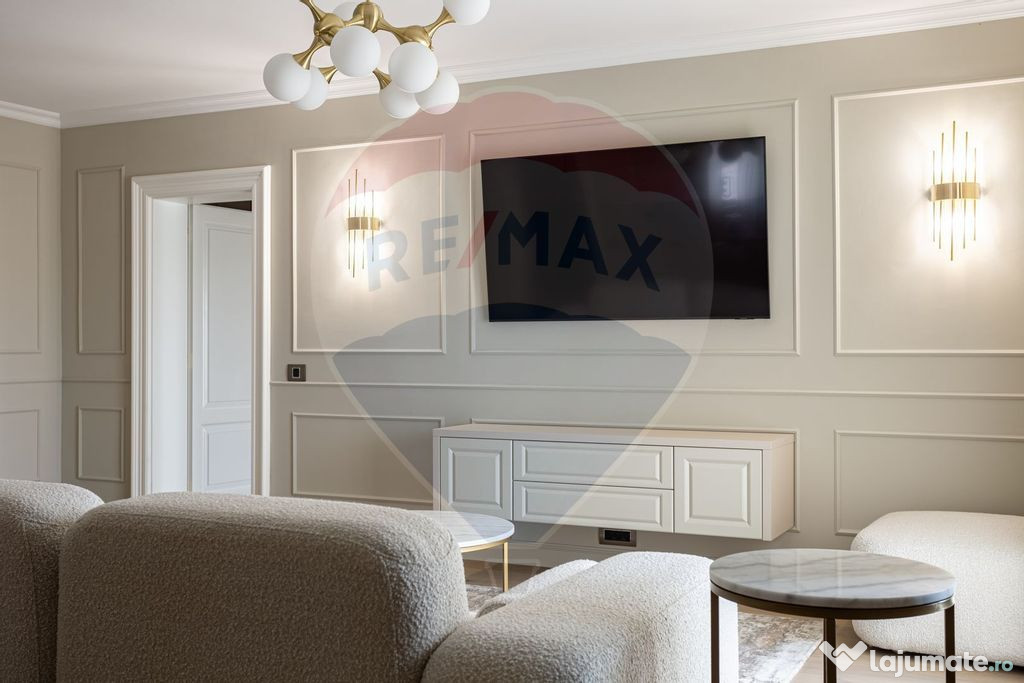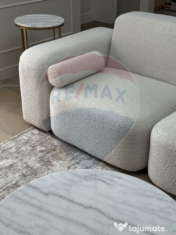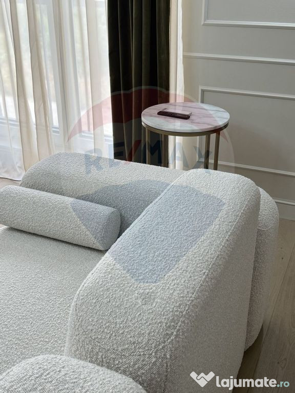Apartamentul dispune de aer condiționat, încălzire prin pardoseală, centrală proprie, loc de parcare privat, mobilier de lux, bucătărie modernă complet echipată, ferestre PVC cu geamuri termopan, precum și acces la internet și TV, oferind confort și funcționalitate la cele mai înalte standarde.