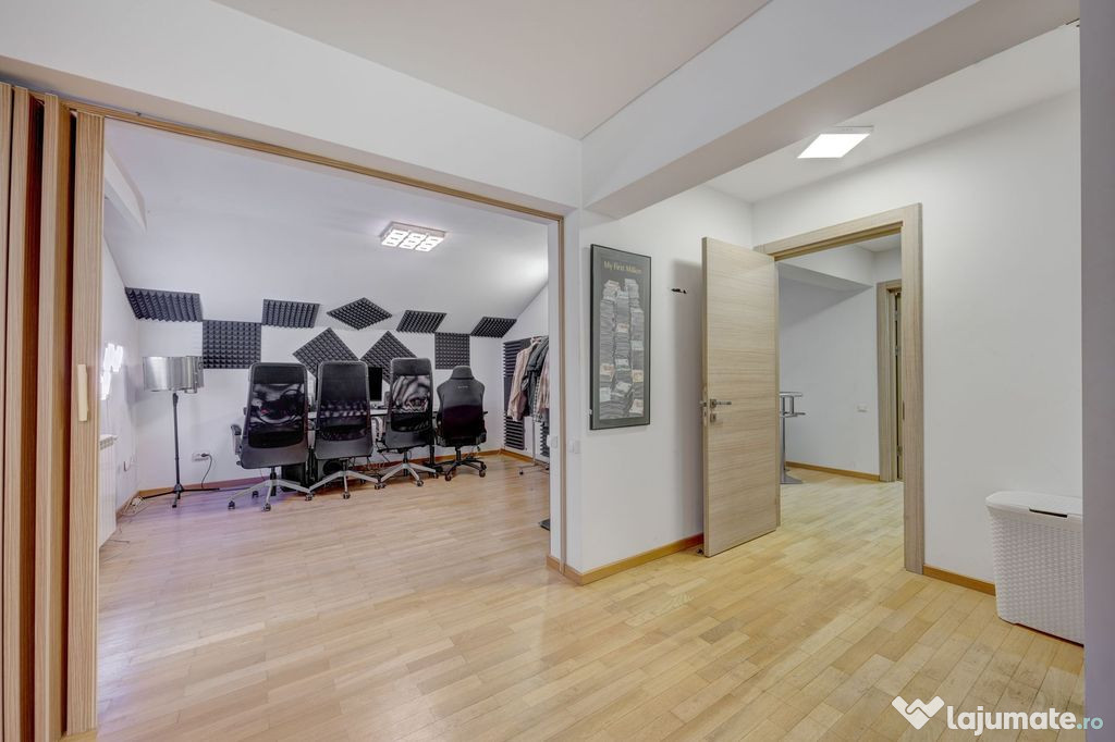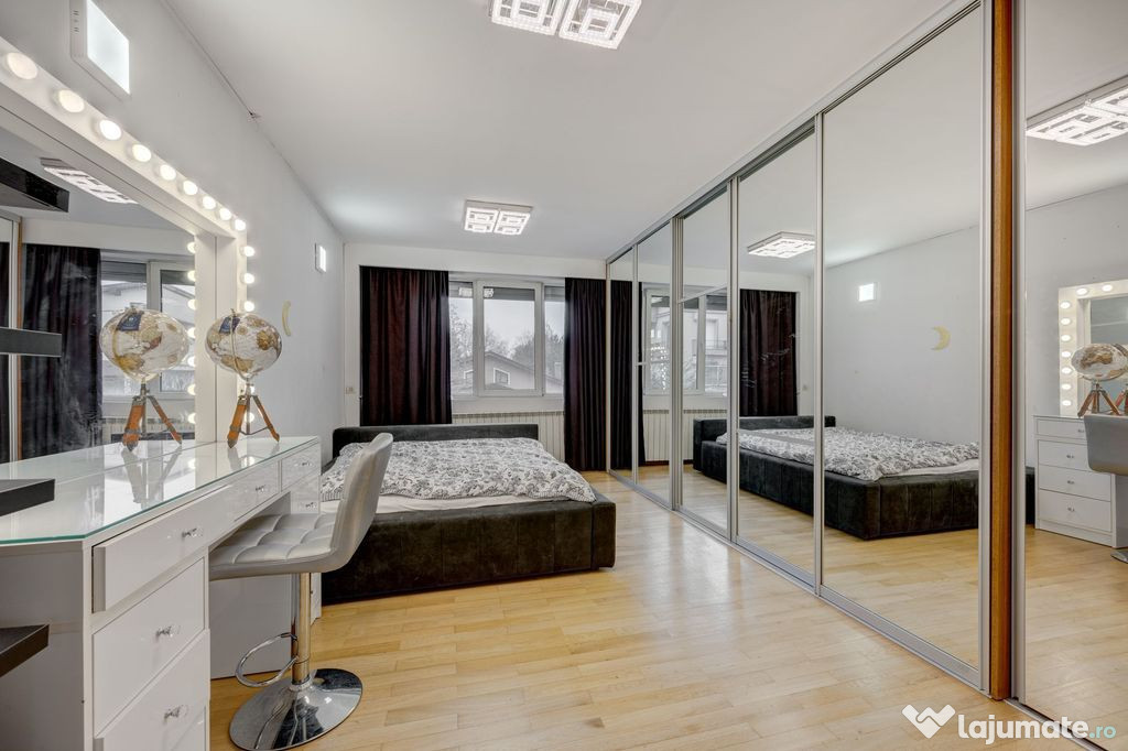 Intr-una din cele mai exclusiviste zone din Nordul Bucurestiului, Bd Pipera intersectie cu Iancu Nicolae, pe o strada privata cu acces controlat, se afla acesta vila gandita pentru confort absolut, autonomie energetica si un stil de viata rafinat.Proprietatea impresioneaza prin terenul generos pentru zona Pipera-Iancu Nicolae, dar si pentru intimitatea care o ofera reprezentand o oportunitatea rara.
