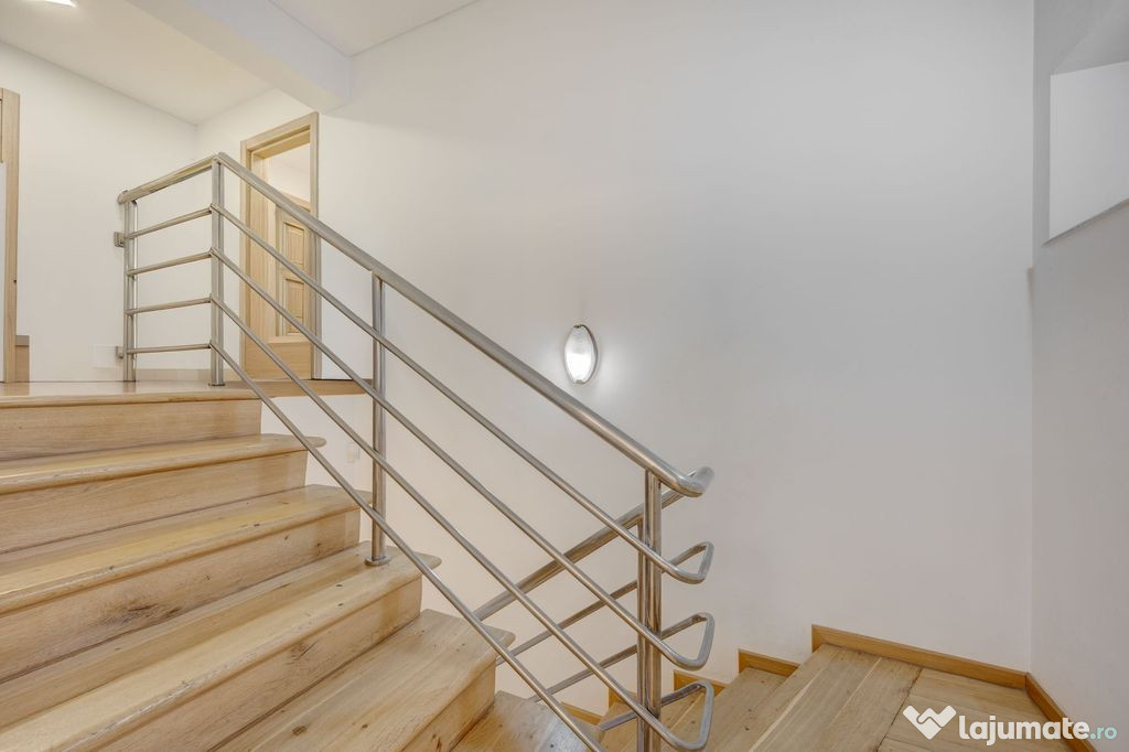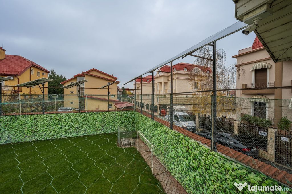 Aceasta vila reprezinta alegerea ideala pentru o familie care isi doreste spatiu, confort, autonomie energetica, dispune de panouri solare de 32kW cu baterii de stocare de 60KW si accesibilitate. Cu un teren vast de 1000 mp o suprafata construita de 300 mp, utila 265 mp, dispusa astfel: subsol: camera tehnica, spatiu depozitare, parter, living, bucatarie, terasa, baie, sala de fitness, garaj, etaj 4 dormitoare, doua bai, 2 balcoane. Curtea dispune de garaj pentru doua masini, foisor, zona de barbeque, teren de fotbal cu nocturna.