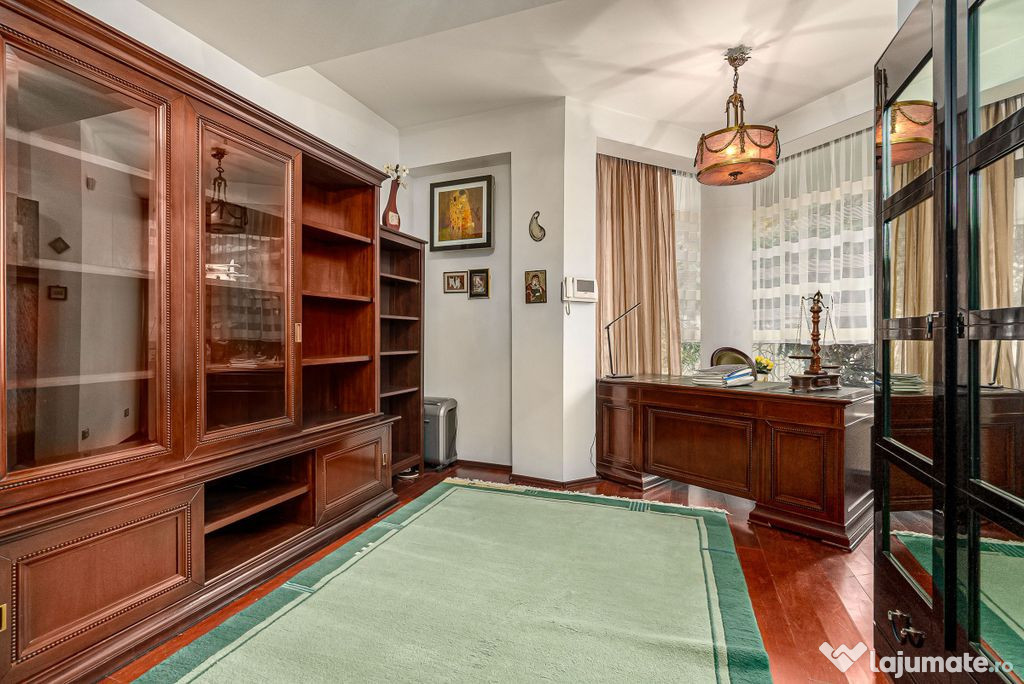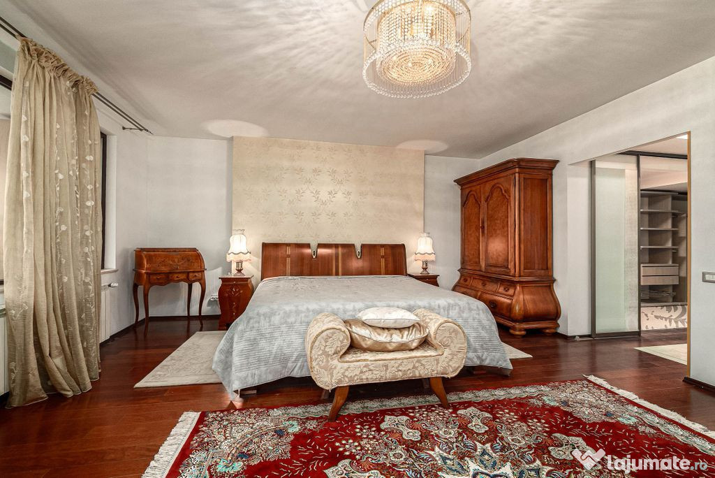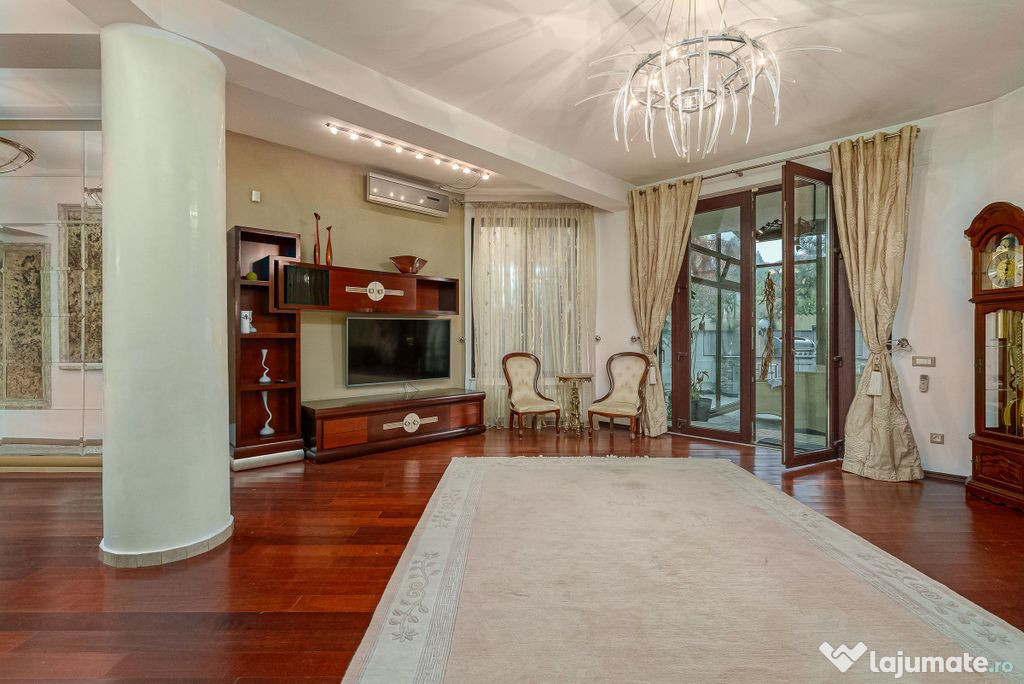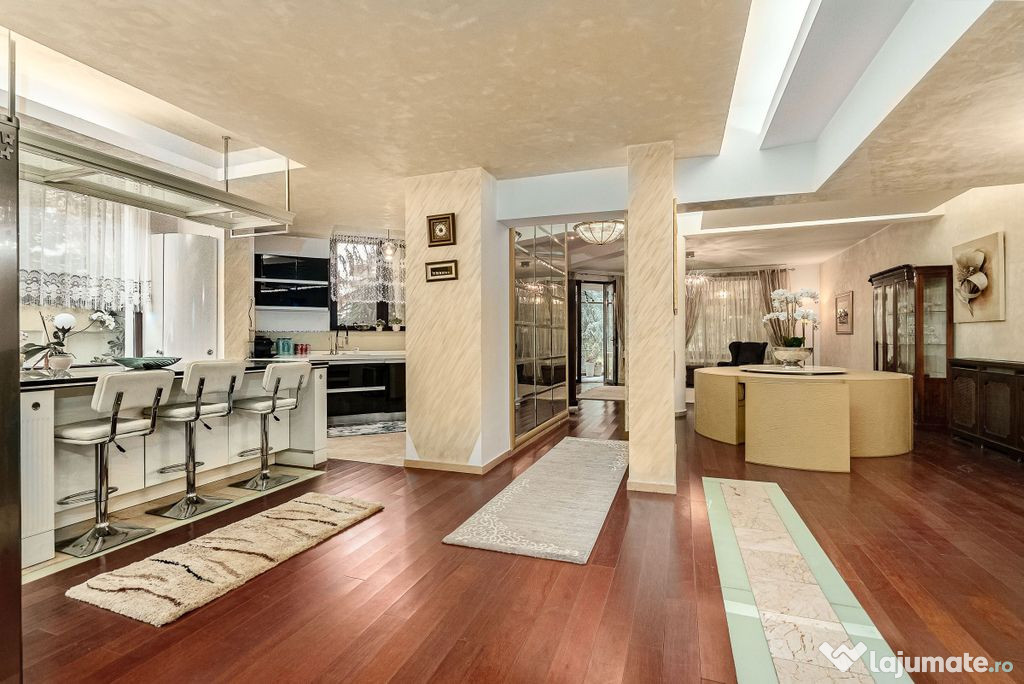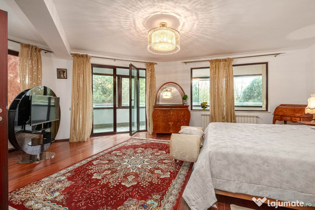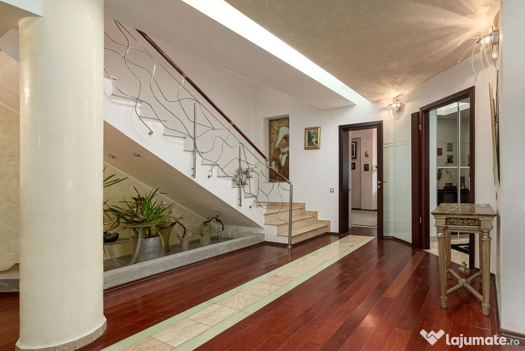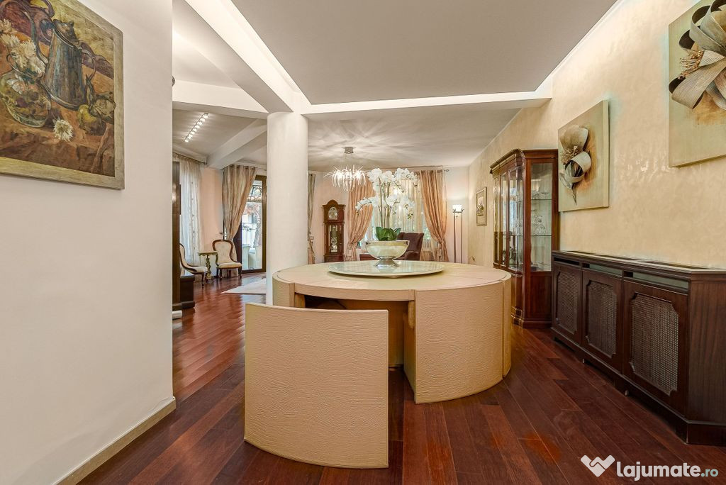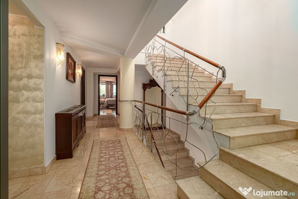 Va prezentam spre vanzare o proprietate deosebita, amplasata intr-una din cele mai apreciate zone rezidentiale- iancu Nicolae: Intrarea Panselelor 20. Situata pe un teren generos de 670 mp cu o deschidere de 14 ml, vila impresioneaza prin arhitectura, compartimentare inteligenta si calitatea finisajelor. Cu o suprafata desfasurata de 360 mp locuinta este ideala pentru o familie care doreste confort, spatiu si o atmosfera exclusivista.Proprietatea se remarca printr-un design interior cald si primitor, mobilier de colectie si aparatura de inalta calitate.