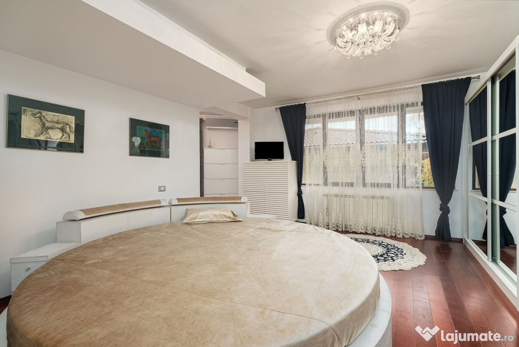 Aceasta vila reprezinta alegerea ideala pentru cei care isi doresc o locuinta spatioasa, eleganta complet dotata si intr-o zona exclusivista. este pregatitata pentru mutare imediata, in prezent fiind nelocuita.