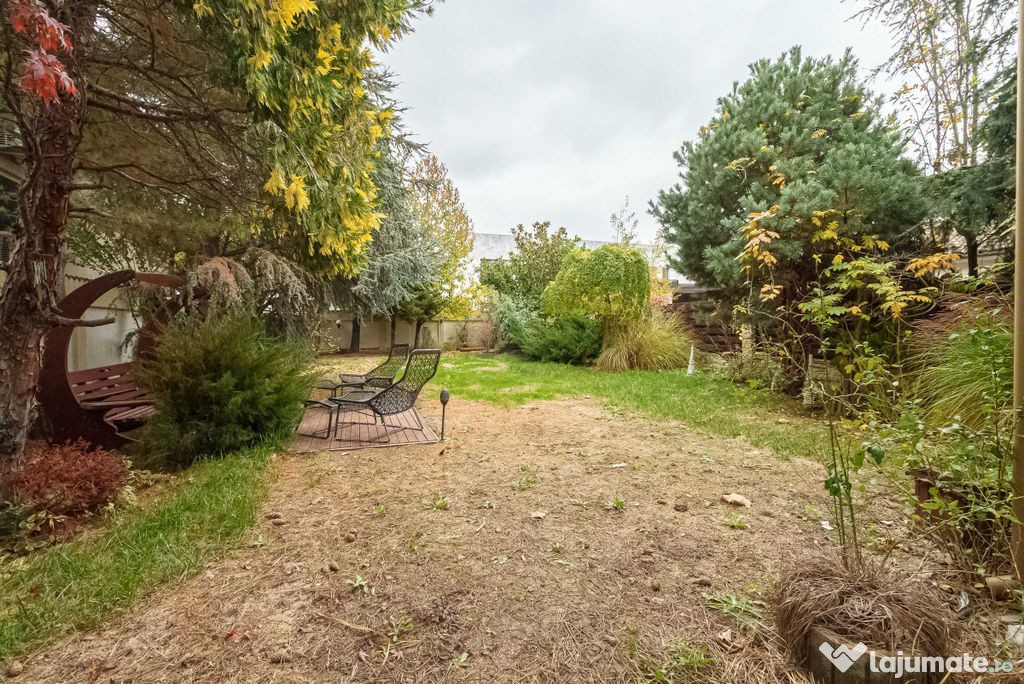 Gradina complet amenajata si barbeque cu zona de gatit mobilata si utilata, terasa, beci si magazie.