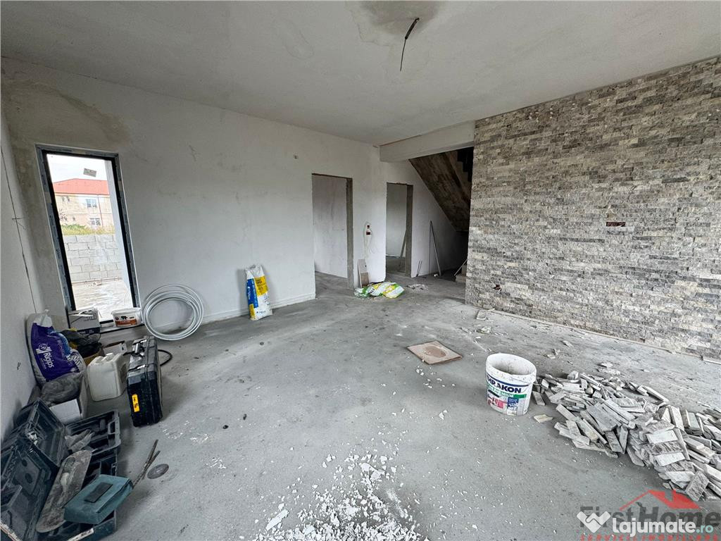 Incalzire in pardoseala, tamplarie tripan , imprejmuire cu gard beton , interiorul se poate alege de client (gresie , faianta , parchet, bai)