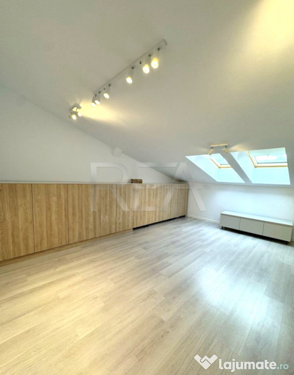 Locuința este organizată pe două niveluri plus un pod mansardat, toate distribuite eficient. Parterul găzduiește un living amplu, o bucătărie modernă și o baie. La primul etaj se află un dormitor matrimonial cu baie privată, alături de un al doilea dormitor, de asemenea prevăzut cu baie proprie. Ultimul nivel oferă un al treilea dormitor cu baie, precum și un spațiu deschis generos, ideal pentru zone de relaxare, lucrat de acasă sau activități pentru copii.