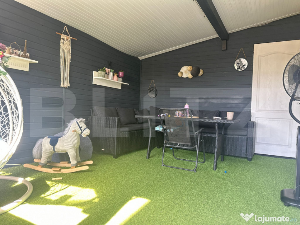 Proprietatea dispune de toate utilitatile: gaz metan, curent electric, apa curenta, canalizare. Casa este foarte usor de intretinut deoarece dispune de PANOURI SOLARE.
