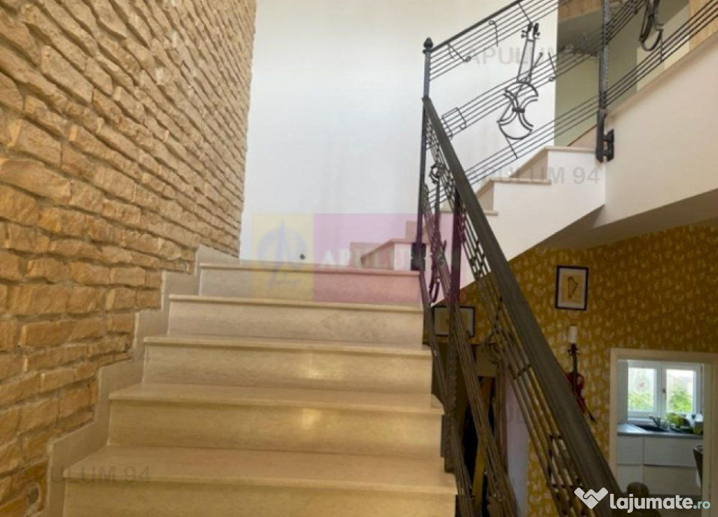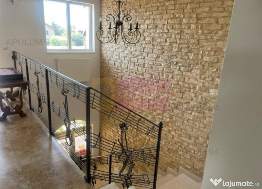 Finisajele interioare sunt de foarte buna calitate, respectiv termopane PVC Veka, parchet triplu stratificat, marmura in toate baile, piatra naturala in living si peretele scarii si holului de la etaj, usi interioare din lemn pe culoarea alba, 4 aparate de aer conditionat.