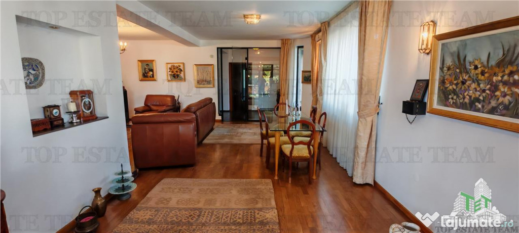 Suprafata utila363mp, suprafata totala 395mp,mansarda inalta de 120mp unde se mai pot amenaja 3 camere si o baie, teren 985mp.