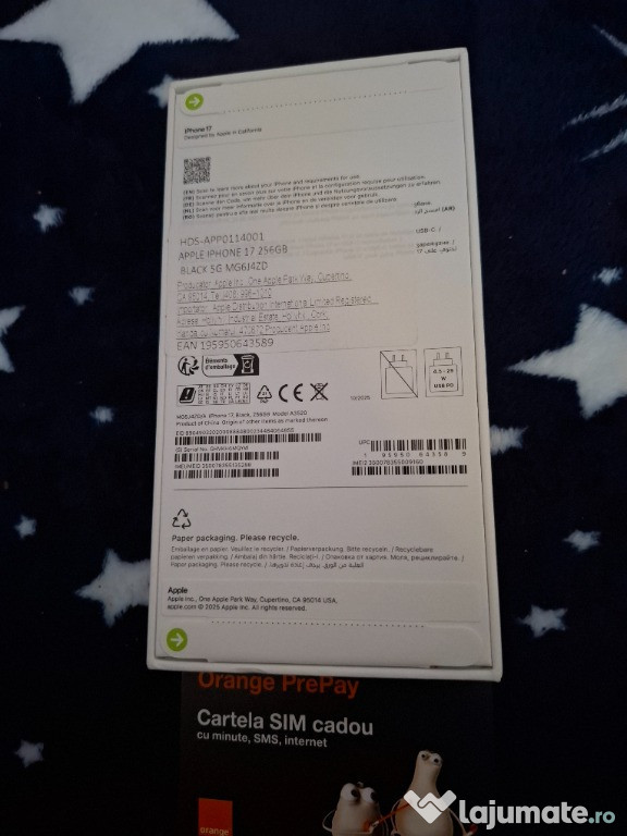 Anuntul Iphone 17 Black 256 Gb este adaugat de pe LaJumate.ro.