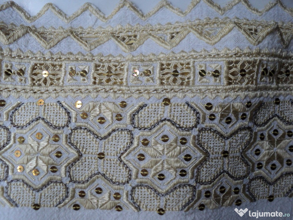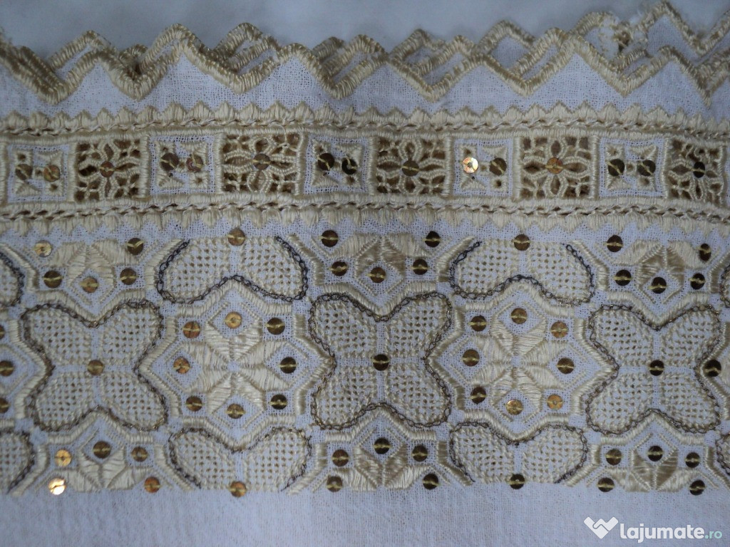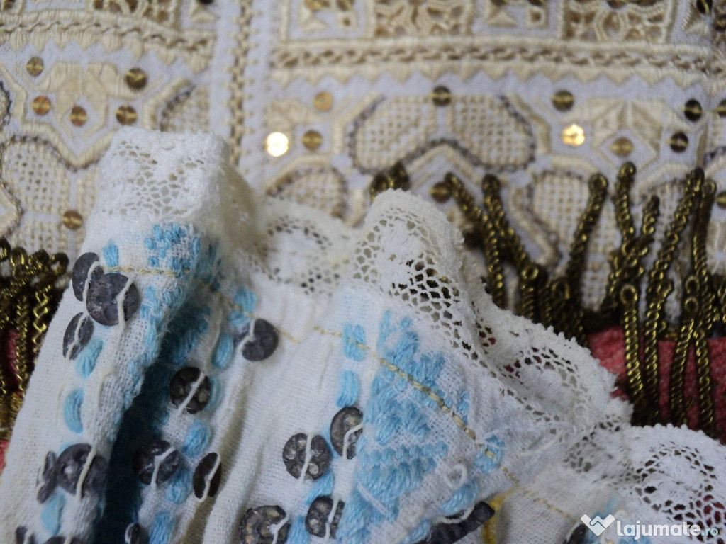 VINTAGE costum popular foarte vechi (are peste 120 ani). Este curat si foarte bine păstrat.Este format din 4 piese: ie lucrata manual pe panza de casă, Împodobită la maneci...gât...cu motive tradiționale, fota cusuta cu fir de mătase, fir metalic și împodobită cu paiete metalice și ciliciei iar poalele din panza de bumbac cu dantela lucrata de mana cu motive tradiționale specifice zonei....fusta (jupa) lucrata manual pe panza de casă de bumbac cu dantela lucrata de mana (lucrată tradițional foarte fin) si snur cu fir metalic