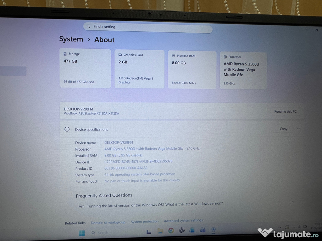 • Placă video: AMD Radeon Vega 8 (integrată)