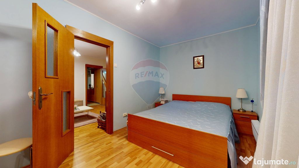 Locuința dispune de centrală proprie, care asigură confort termic în orice sezon, și de sistem de alarmă pentru un plus de siguranță. De asemenea, apartamentul beneficiază de două locuri de parcare.