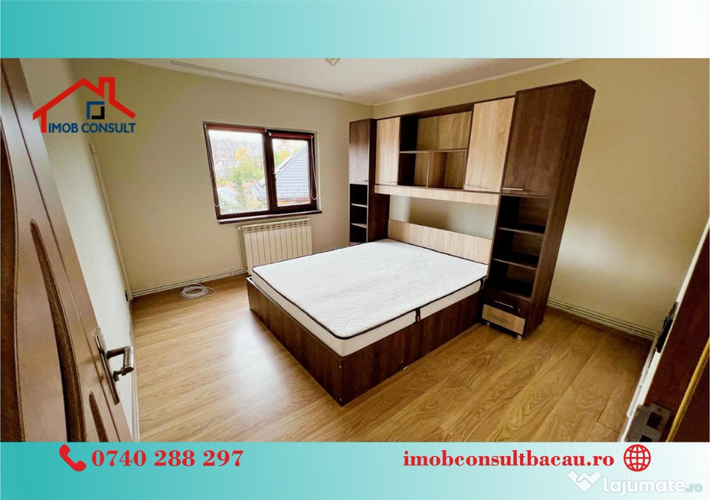 Echipa Imob Consult Bacau va prezinta spre închiriere un apartament elegant cu 3 camere decomandate, situat la etajul 2 al unui imobil solid, construit în anul 1990. Cu o suprafață utilă generoasa, locuința se remarcă prin spațiu, luminozitate și o compartimentare echilibrată, concepută pentru confortul cotidian.Apartamentul este complet mobilat și utilat, cu atenție la detalii, oferind o atmosferă caldă și primitoare. Livingul generos, alături de cele două dormitoare luminoase, creează un spațiu armonios, perfect pentru relaxare și tihnă. Bucătăria, modern echipată și funcțională, beneficiază de acces direct pe unul dintre cele două balcoane, un detaliu care adaugă un plus de confort și eleganță.