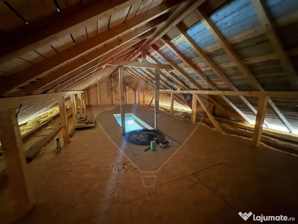 Compartimentarea este practica si functionala, fiind formata din doua dormitoare, un living spatios cu bucatarie open space si o baie. Un alt avantaj important este posibilitatea de mansardare, iar instalatiile pentru apa, scurgere, dar si pentru calorifere, sunt deja trase la mansarda.