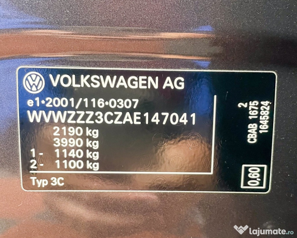 ➖ Serie VIN: WVWZZZ3CZAE147041