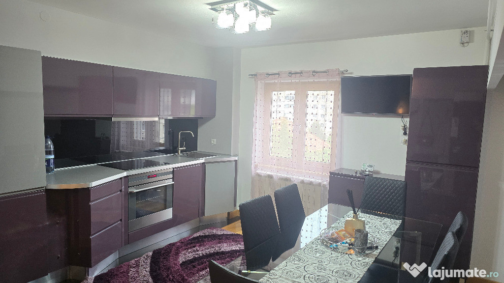 Inchiriez apartament 2 camere decomandat in Deva, zona ultracentrala (Spitalul Judetean), etaj 3, bloc din anul 1989 de 4 etaje, suprafata utila 55 mp + balconul, amenajat modern, usi schimbate (Barbu Bacia), instalatia electrica pe cupru, instalatii sanitare noi, alarma, tamplarie PVC cu geam termopan tripan, centrala termica, gresie, faianta, parchet natural, pervaze de marmura, instalatia termica pe polipropilena ingropata in perete, calorifere de aluminiu, aer conditionat, mobilat si utilat integral cu mobila la comanda si electrocasnice de calitate exact cum se vede in fotografii.Pret: 2250 lei/luna + garantie + Comision Agentia Imobiliara 50% din prima chirie, pentru chirias. Tel: ascuns Mai multe poze, VIDEO si detalii pe www.apartamentedeva.ro sau la Agentia Imobiliara Ovidiu Deva.Confort: 1