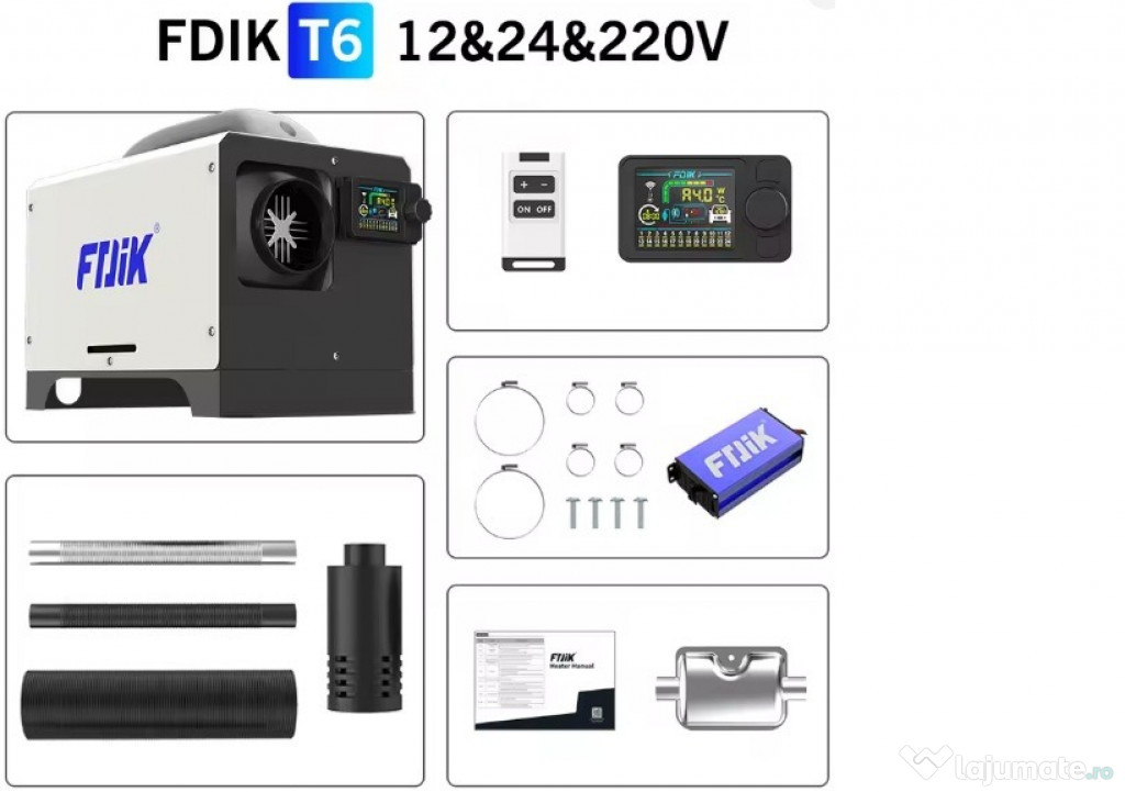 Încălzitor diesel portabil , funcționează la 12/24V,la o baterie auto,sau la rețea,la 220V cu ajutorul unui adaptor de 12V15A inclus. Acesta poate fi utilizat pentru încălzirea spațiilor interioare sau exterioare. Dispune de un afișaj digital pentru monitorizarea temperaturii și are o putere de încălzire de până la 8 kW.Are telecomandă pentru un control mai ușor sau se poate utiliza aplicația mobilă cu ajutorul bluetooth ...Pompa silențioasă , spre deosebire de vechile modele, nu se mai aude acel țăcănit ...