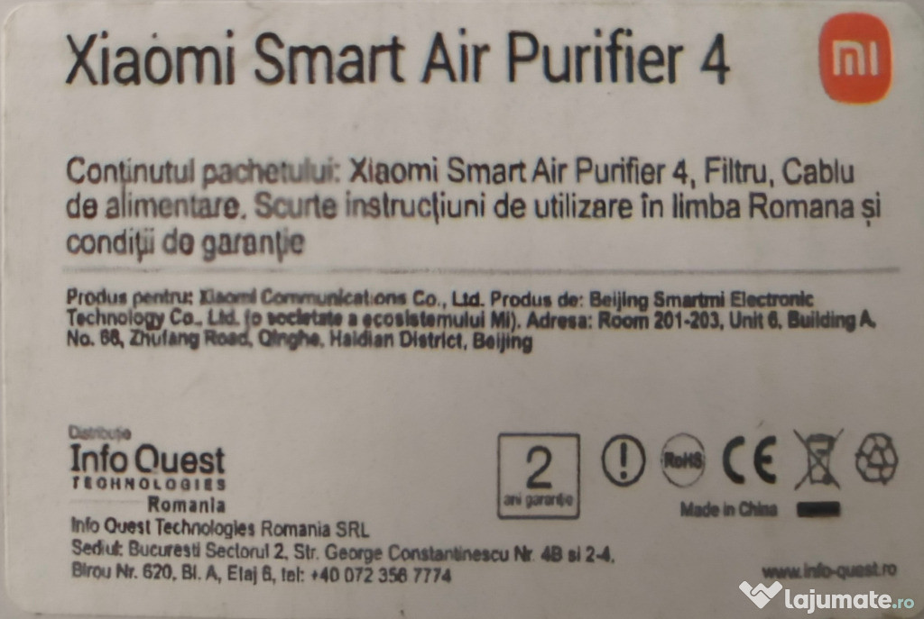 Anuntul Xiaomi Smart Air Purifier 4 este adaugat de pe LaJumate.ro.