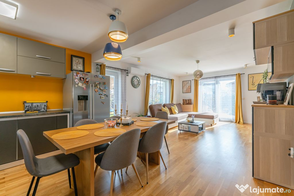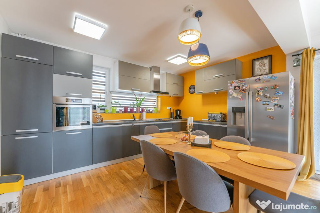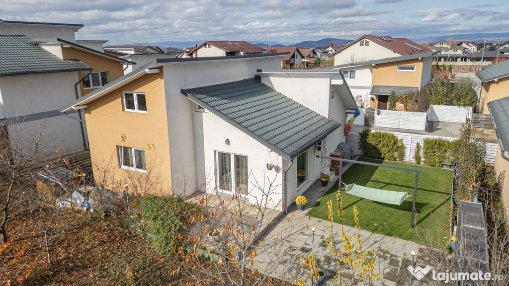 Casă premium – 4 camere, 120 mp utili, complet mobilată și utilată – TărlungeniDescoperiți confortul unei locuințe moderne, realizată cu atenție la fiecare detaliu. Situată într-o zonă liniștită din cartierul Izvor, la doar câteva minute de Brașov, această casă oferă spațiu, lumină și calitate în fiecare colț. Casă complet mobilată și utilată, cu mobilier și electrocasnice moderne.
