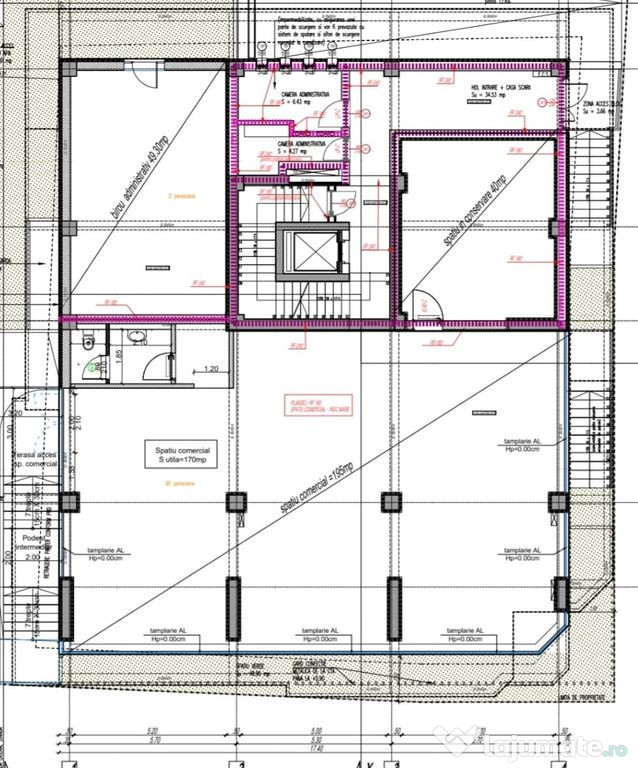Spațiu comercial central – 190 mp utili, distribuiți pe