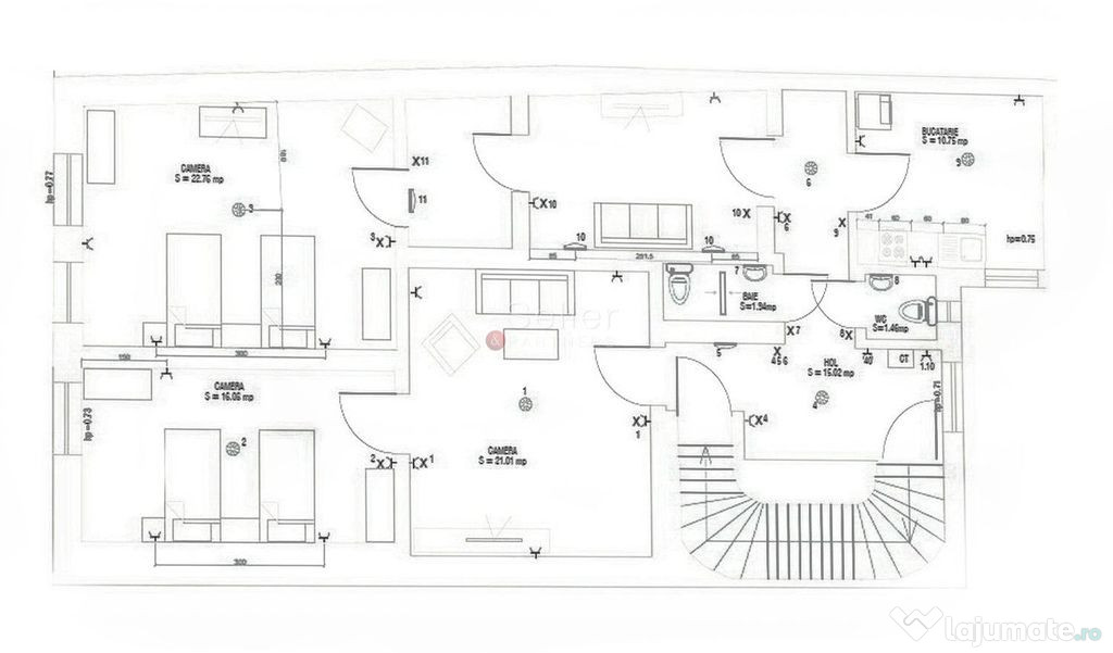 - Bucataria, de tip inchisa, ce este semimobilata;